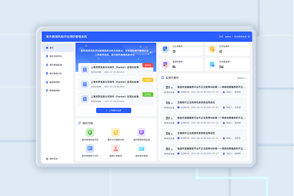 案件舆情风险评估预防管理系统致力于为敏感案件审判工作服务,通过大数据分析技术开发,并与审判管理系统对接,直接向办案法官推送敏感案件舆情信息及舆情报告,并提供相似敏感案件舆情档案比对服务,最终为法官审判提供科学合理的参考依据。
